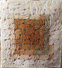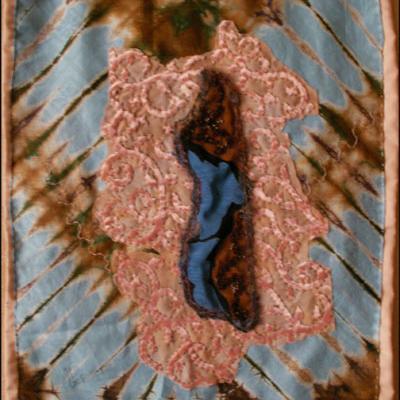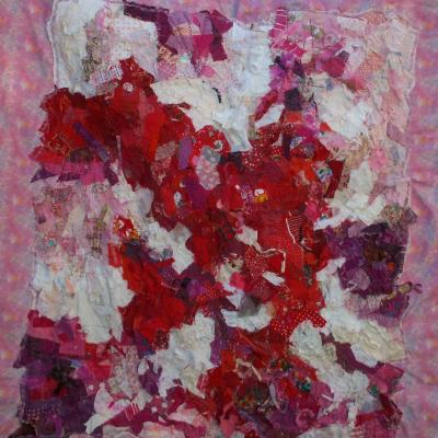 Techniques : brodé et fixé main et machine -montage sur toile de jute .