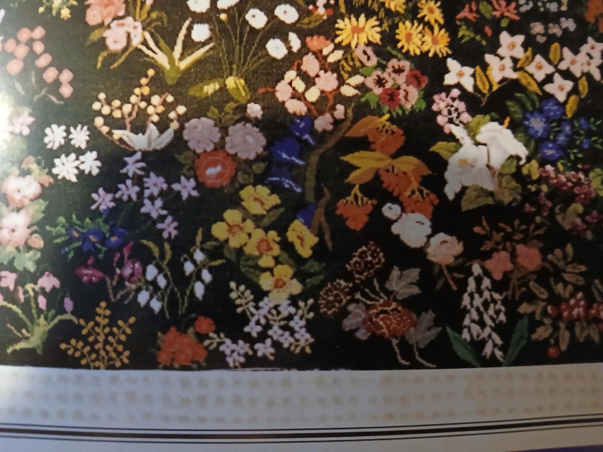 Hier comme la tempête et la pluie me privaient de jardin, j'ai flâné dans les vieilles revues d'art textiles et notamment Les Cahiers du Patchwork auxquels je fus abonnée jusqu'à leur disparition. Nous sommes dans les années 1990 et j'ai encore techniquement beaucoup à apprendre (du reste 30 ans plus tard, je continue ) . Et je tombe sur un article qui ne m'était pas resté en mémoire, sur une brodeuse en tapisserie à l'aiguille, évidemment inconnue qui pourtant mériterait de l'être. Je ne reproduis pas l'article n'en ayant pas le droit, mais je résume : . elle s'appelait Berthe de Vals née en 1906; et brodait, nous dit-on, des objets utilitaires.
